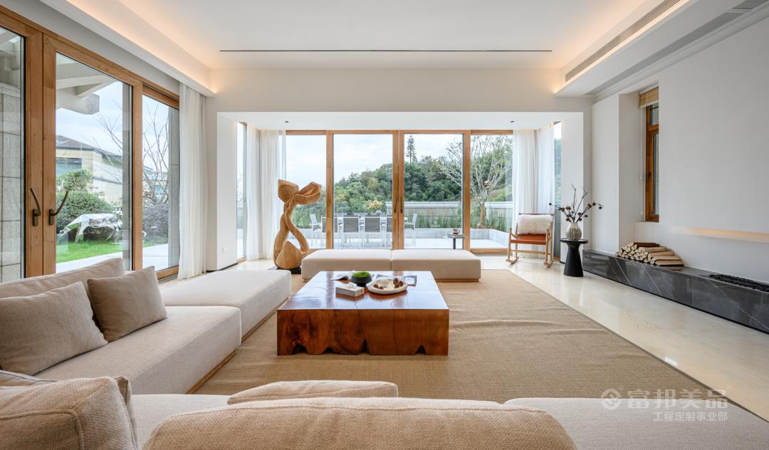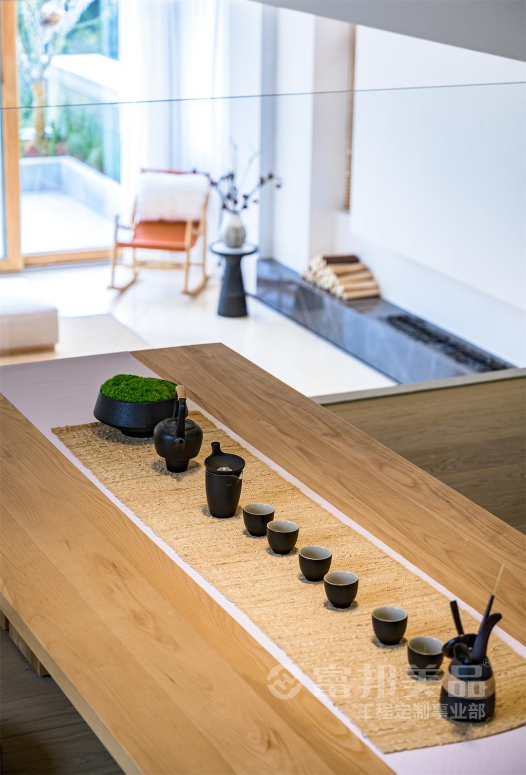 放眼望去,舒適自然的大地色系主導(dǎo)著室內(nèi)。家具融入「?jìng)鹘y(tǒng)與現(xiàn)代、經(jīng)典與自然」的格調(diào),去實(shí)現(xiàn)人與環(huán)境的美好互動(dòng)。讓人們?cè)谪S沛的山水意境之間,體味人間詩(shī)情畫(huà)意生活。