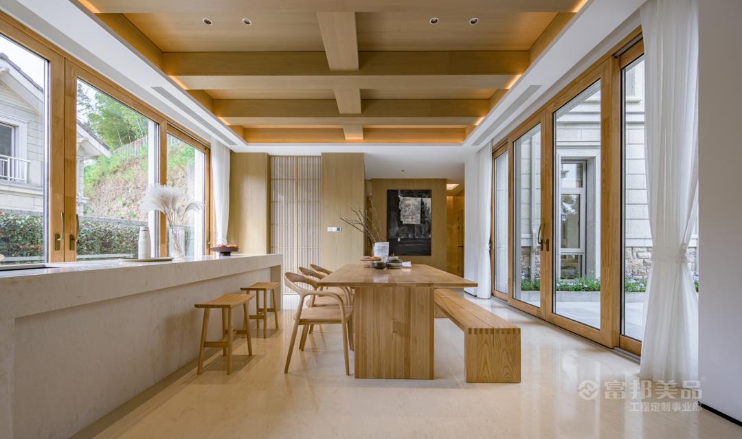 「湖山一品」落址于浙江寧波蓀湖度假區(qū),項(xiàng)目傳承東方府院文化之精髓,是城市中難得的雙層獨(dú)棟國(guó)風(fēng)大境墅居。富邦美品為其量身定制家具+樓梯+護(hù)墻+木門(mén)+櫥柜+衣帽間等,通過(guò)空間的營(yíng)造,在繁華與歸隱的閑適之間,找到一種平衡點(diǎn),讓城市精英心馳神往。